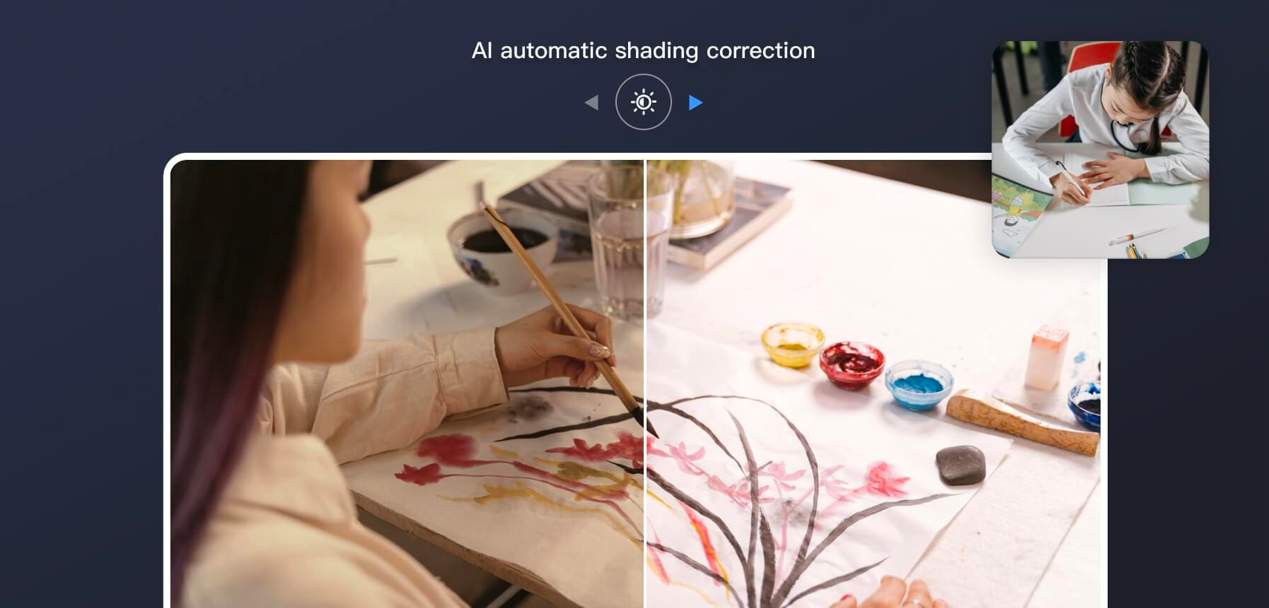 支持高清低延直播和AI自动明暗矫正,绘画演示更清晰。